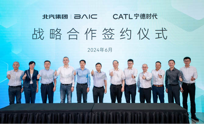 6月18日,北汽集团与宁德时代签署深化战略合作协议,北汽集团党委书记、董事长张建勇,宁德时代董事长兼CEO曾毓群出席签约仪式;北汽集团副总经理刘宇,宁德时代乘用车事业部执行总裁朱威代表双方签署协议;宁德时代CFO郑舒及时代电服总经理杨峻、时代智能董事总经理杨汉