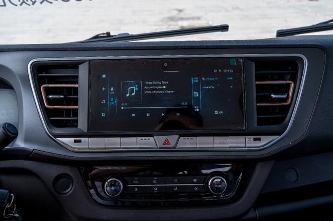 新车的大屏,也让汤先生乐在其中。原来路途遥远,汤先生难免觉得枯燥无聊。现在轻轻动下手指,就可以享受到美妙音乐,让汤先生的运输生活变得有滋有味。