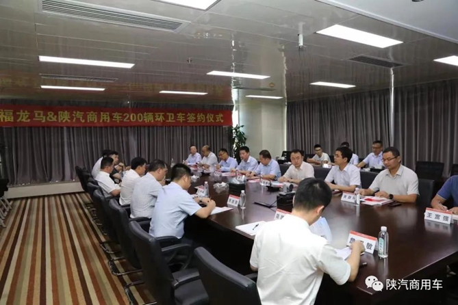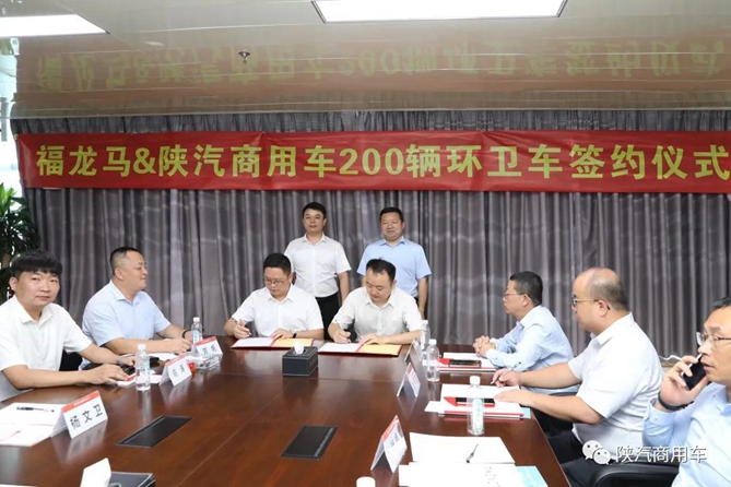 在嘉宾的见证下,陕汽商用车与福龙马进行了200辆环卫车签约。