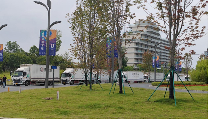赛会期间,人们常常看到由30台白色乘龙卡车组成的物资运输车队穿梭于成都街头,成为大运会另一道亮丽的风景线。