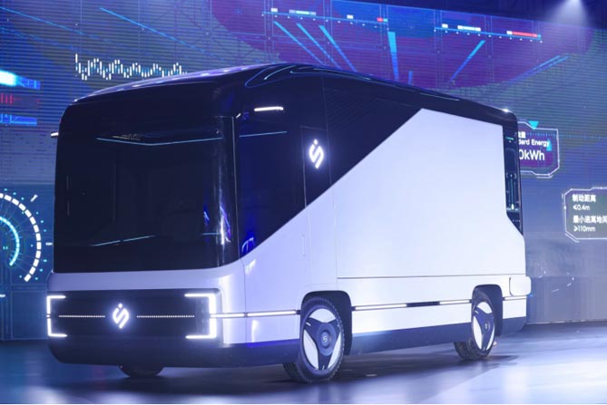 新能源冷链车S1:该车型基于正向研发,车长5,995mm,具有超过18 m³的储物容量。车身独特的一体化设计确保了充分利用空间,0.4的风阻系数使其在同类物流车型中拥有较好能耗表现。车辆搭载了106kWh的电池组,可以提供300km的行驶里程。0至80%的快速充电仅需40分钟,而支持的换电模式可在5分钟内完成快速电池更换,大大增加了使用效率和便捷性。分布式电机直接驱动车轮,简化了传动链,带来更为紧凑的车身结构,同时为车辆内部提供更多的空间。全车支持OTA升级,更有L4级别的辅助驾驶、智能中控、步入式座舱等高科技配置,让驾驶更加轻松、安全。该车型还搭载了一块创新的车厢外电子屏幕,可以对外输出多元化内容。