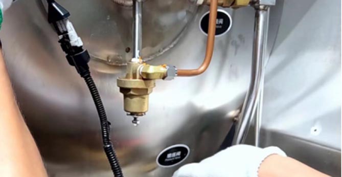 务必佩戴手套操作气瓶上的出液阀、增压阀、放空阀,避免低温冻伤。顺时针旋转为关闭阀门,逆时针旋转为开启阀门。开启阀门到最大角度时,建议回转10-20度,以避免低温结冰冻住阀芯。如果阀门被冻住,也不要用锤子和撬棍敲击,应该用温水持续浇注,融化冰霜后再对阀门进行操作。