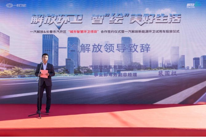 裴国权致辞表示:“一汽解放将继续坚持自主创新,坚持绿色发展,将以推动新能源汽车行业健康发展为重要使命,持续为用户创造价值,为社会创造财富,为国家的碧水蓝天贡献解放力量。同时,作为坐落在长春市的企业,解放一定会大力支持、助力长春市绿色转型发展,为加快吉林省公共领域电动化不遗余力贡献力量。”