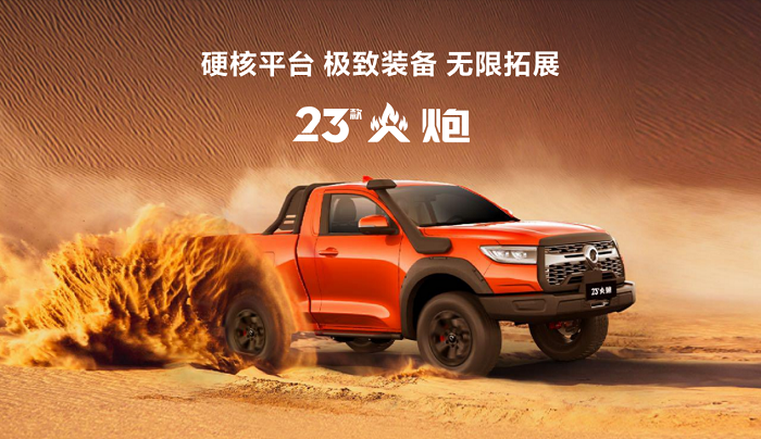 越野炮作为中国首款全地形量产越野大皮卡,广受越野玩家信赖,稳居中国越野皮卡单车型销量榜首。23款越野炮定位“全球智能豪华越野皮卡”,冠军实力再进阶,以“越野型、越野心、越野趣”三大硬核实力,成为越野爱好者的专业伙伴。