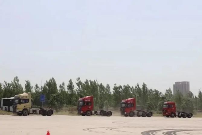 ①考验底盘稳定性。大家一定对专业赛车手,或者影视剧中常出现的漂移不陌生,多数人会认为这首先是车技了得,其次就是车辆品质杠杠的。没错,陕汽重卡特技队这次特意用陕汽普通的6×4牵引车(经简单改装)表演了一把漂移。180度、360度,单侧漂移、连续左右画出8字的漂移,精彩至极。中国物流商用车专家顾问委员会的专家看得入了神,为陕汽重卡的出色表现竖起了大拇指。