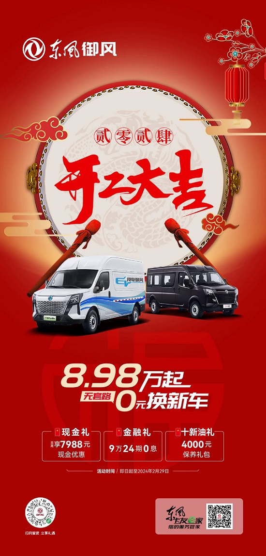 新春盎然阔步前行,开工焕新事事顺心。新的一年里,赚更多的钱、过更好的生活,成为车友们的期待,在追求财富与幸福的道路上,东风御风V9+可谓独具匠心,助力【稳赢】新生活。