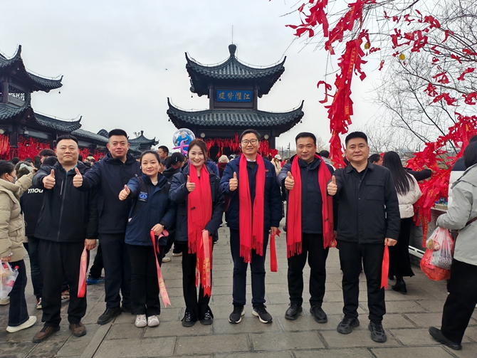 在这片沸腾的人潮中,全柴动力总经理刘吉文带领集团中层及以上领导团队,与时代汽车新能源业务总裁、时代营销公司常务副总经理刘永强、时代汽车品牌总监徐小芸,共赴一场“承千年太平,启时代新程”活动。这是工业文明与千年文脉的相拥,更是品牌温度与群众情感的共振。借着走太平的好彩头为广大卡友祈福、送平安,也是“工业品牌和千年民俗的双向奔赴”。