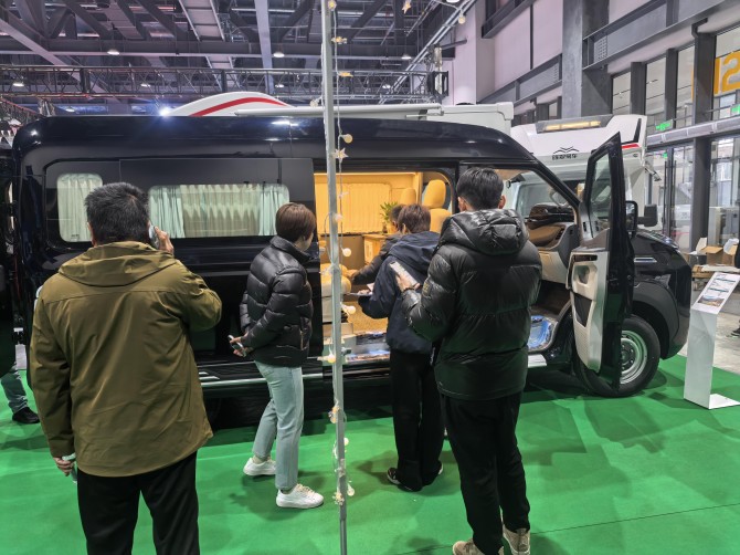 面对都市人群“日常通勤+周末逃离”的双重需求,本次参展车型中包含了颇具巧思的解决方案。短轴低顶车型造型简约实用,轻松下地库,日常代步无压力,周末露营、钓鱼、自驾旅行随心切换;车内空间宽裕规整,大床、双床版多种格局可选,配有锂电、冰箱、空调、柴暖,宿营生活更自在。