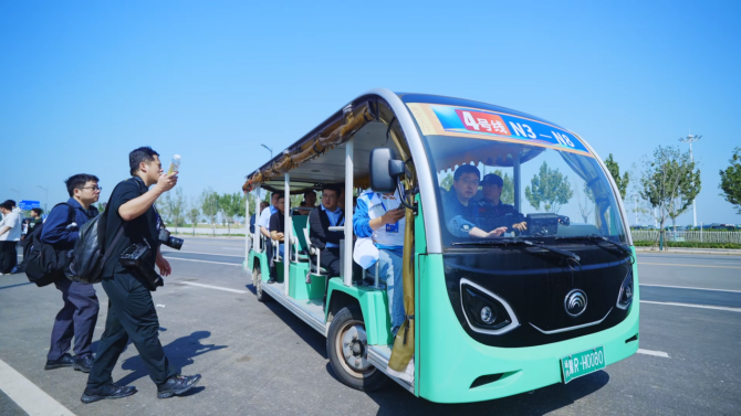 呼应大赛的“向新”导向,2辆自动驾驶巴士小宇2.0领衔大赛赛场接驳服务任务。作为宇通自主研发的L4级自动驾驶巴士,它的‘大脑’集成AI、5G和多传感器技术,具备自动避让、变道、精准停靠及红绿灯识别等功能。截至2025年8月,小宇已在国内24个城市累计行驶超600万公里,应用场景覆盖城市微循环公交、景区接驳及园区通勤等。