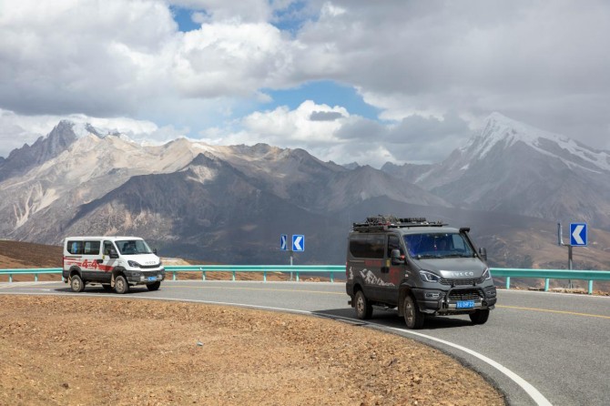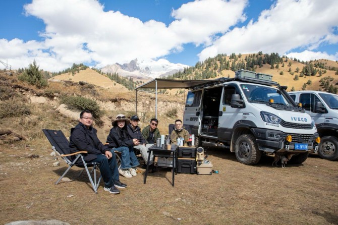一路前行,欧霸·山海可谓“大杀四方”。全时四驱系统与全地形轮胎配合,在劳者龙巴垭口的盘山路上稳如磐石;车身稳定系统让车辆始终保持最佳抓地力,即便在湿滑积雪路面亦能保持最佳抓地力。在海拔5100米的扎瓦拉观景台,队员们纷纷顶着飘雪下车,举起相机,将双子峰在云雾中的壮阔全景定格成永恒。此刻,欧霸·山海的硬核性能与川西高原的神秘美景交织,成为征服者最珍贵的勋章。