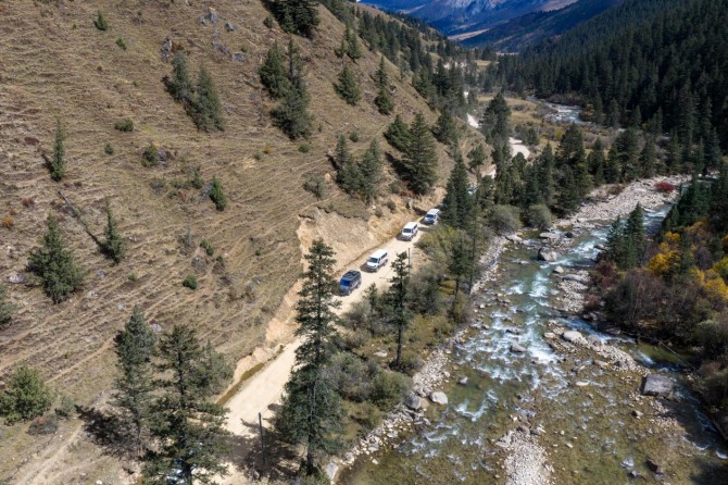 这是“越野越行·真四驱越野专线”活动川西征程的第三天,早晨8:30,由六辆欧霸·山海车队准时出发,车队沿格聂南线蜿蜒前行,F1C3.0T发动机在低温中爆发出强劲动力,采埃孚8AT变速箱如手术刀般精准换挡,硬核底盘调校与全地形轮胎在碎石路上如履平地。