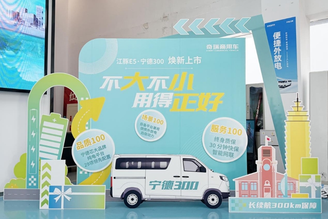 奇瑞商用车深度承接这一技术红利,以“智慧物流生态核心载体”为使命,将集团26年技术积淀与“新能源+智能化”突破深度融合。在此背景下奇瑞商用车精准落子,推出江豚E5·宁德300,以“不大不小,用得正好”为产品哲学,将科技创新真正转化为用户可感知的实用价值,迈出从技术领先到场景落地的坚实一步。