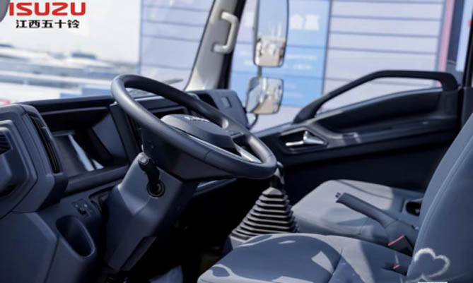 座舱内部,驾驶室宽度最大达2050mm,选配五十铃原装进口减震座椅,提供了更好的包裹性和动态舒适性。同时,轿车级豪华精美内饰、环抱式中控仪表台、丰富储物空间、NVH静音技术等人性化设计,也为卡友们打造了一个舒适宜人的驾乘环境。不止舒适,安全永远是五十铃产品的底线。车辆搭载了倒车影像、防超速提示、定速巡航等,为用户带来便捷与安全。