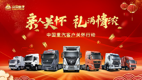 牛年春节将至,中国重汽给卡友们准备的礼物也如期到来:2021年1月15日至3月31日,中国重汽开展客户关怀行动,期间,中国重汽豪沃、汕德卡、豪沃轻卡等品牌将组织形式多样的活动,将“亲人”服务关怀送到广大用户手中。