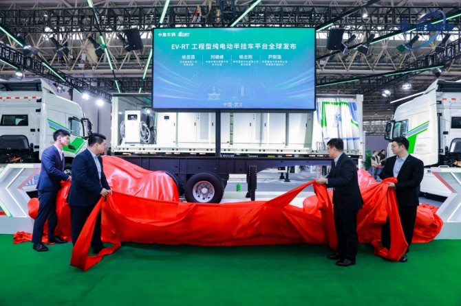 现场,中集车辆全球首发工程型纯电动头挂列车的全套解决方案,用硬核技术与创新生态,为行业绿色化转型提供典范。