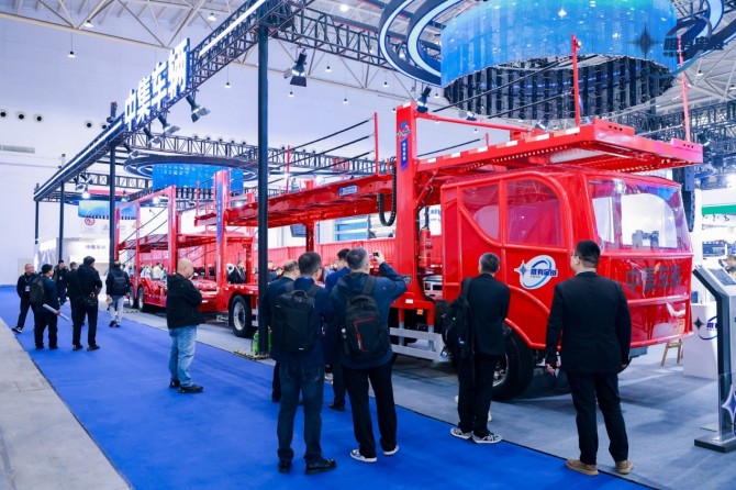 除了在液态食品运输行业深耕外,中集车辆亦不断推动车辆运输车的升级迭代。“星辰风暴”车辆运输车产品的惊艳亮相,是中集车辆响应2025年7月《车辆运输车专项治理行动方案》,结合多年车辆运输车设计经验研发的全新车型,旨在为客户提供合规、高效、安全、省心的车辆运输方案。