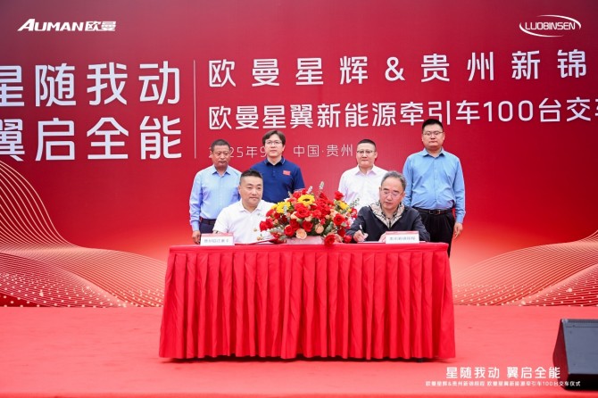 9月23日,以“星随我动 翼启全能”为主题的欧曼星翼新能源牵引车100台交车仪式在贵州六盘水隆重举行。现场欧曼星辉与客户代表成功签约,100台欧曼星翼400kWh新能源牵引车正式交付。本次签约及批量交付,不仅体现出欧曼星翼新能源牵引车在物流运输业及商用车市场的高度认可,更验证了欧曼在新能源技术领域的强劲实力,赋予贵州乃至全国物流运输适配多场景的绿色动能,引领新能源牵引车行业迈向新时代发展新高度。