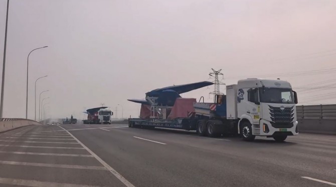 空客大部件首次全电公路转运,欧曼银河5M极效护航